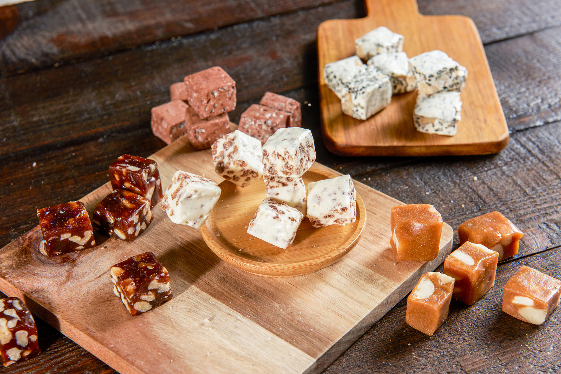 在充滿唇齒間的彈彈黏黏太妃糖中,一絲堅果香隱隱地為整塊糖果增添了異國的風味