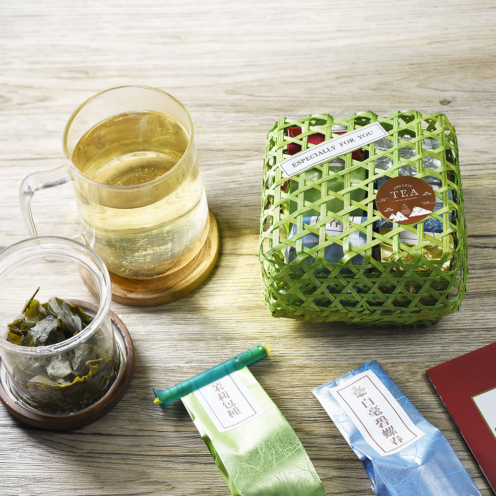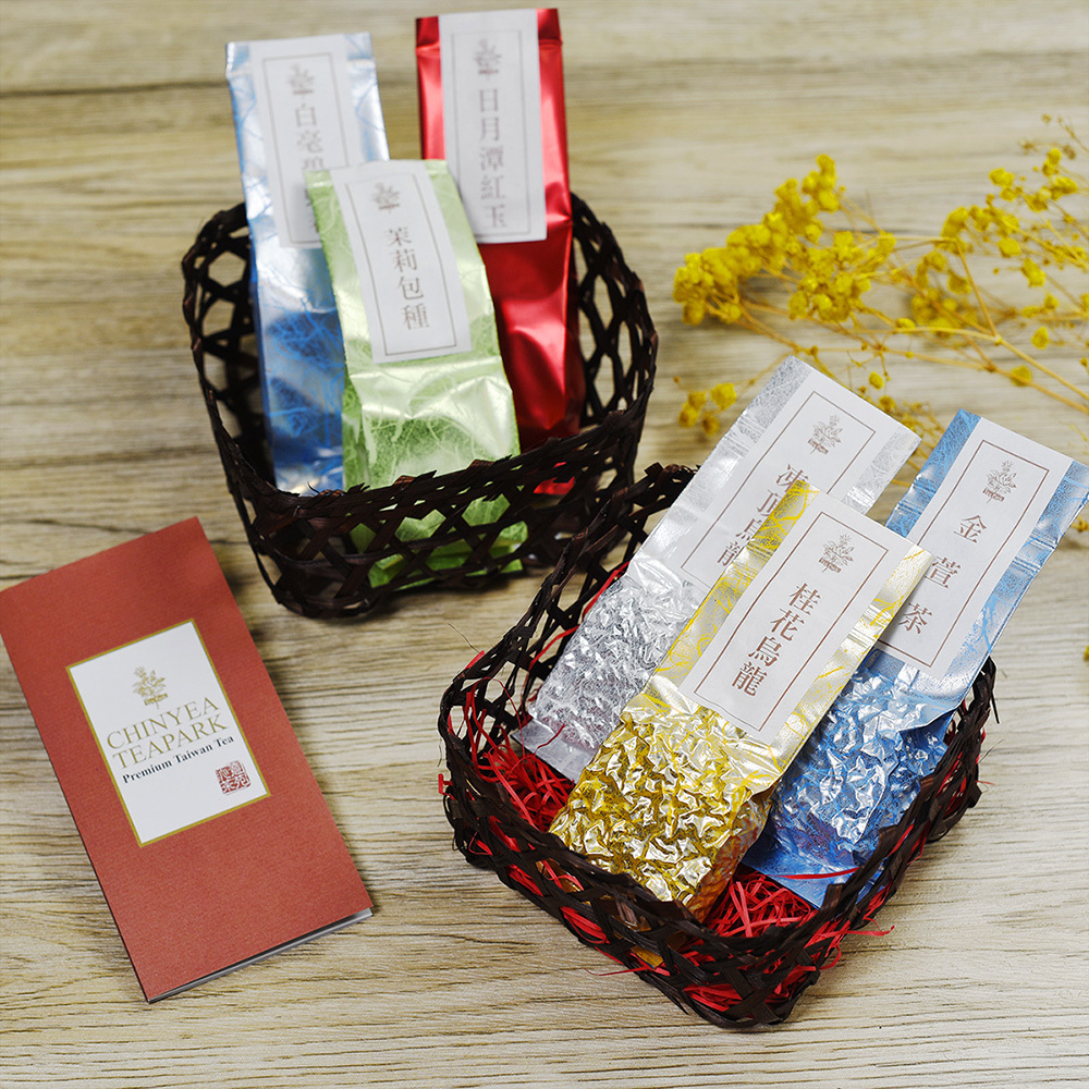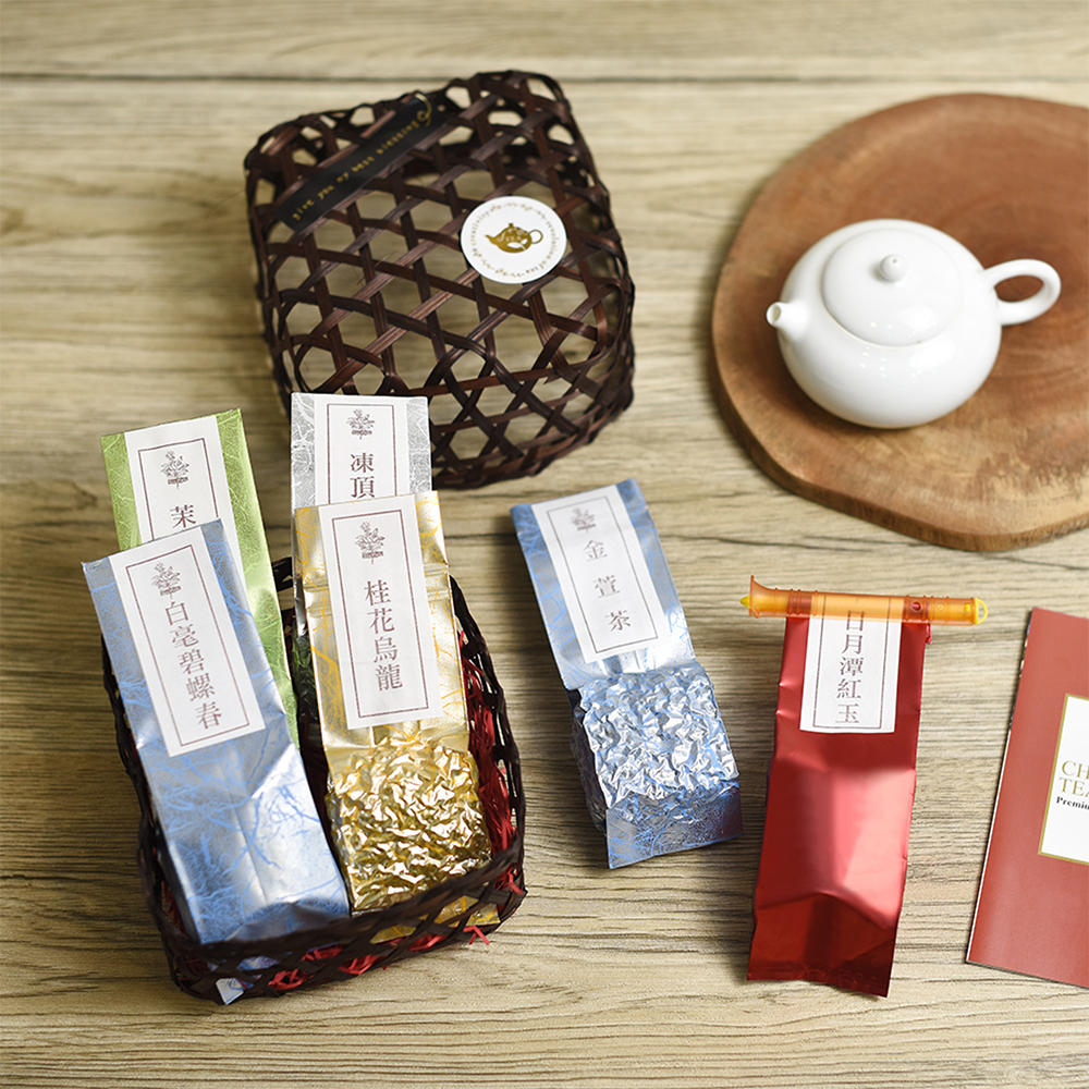 精選六款台灣茶獻給愛茶人: 南投魚池自然栽培的手採「日月潭紅玉」, 台北三峽「頂級白毫碧螺春」, 天然窨花「茉莉包種茶」, 經典比賽茶「凍頂烏龍」, 口碑NO.1的傳統「桂花烏龍」, 獨特天然牛奶烏龍「奶香金萱」…… 附贈密封夾1支。