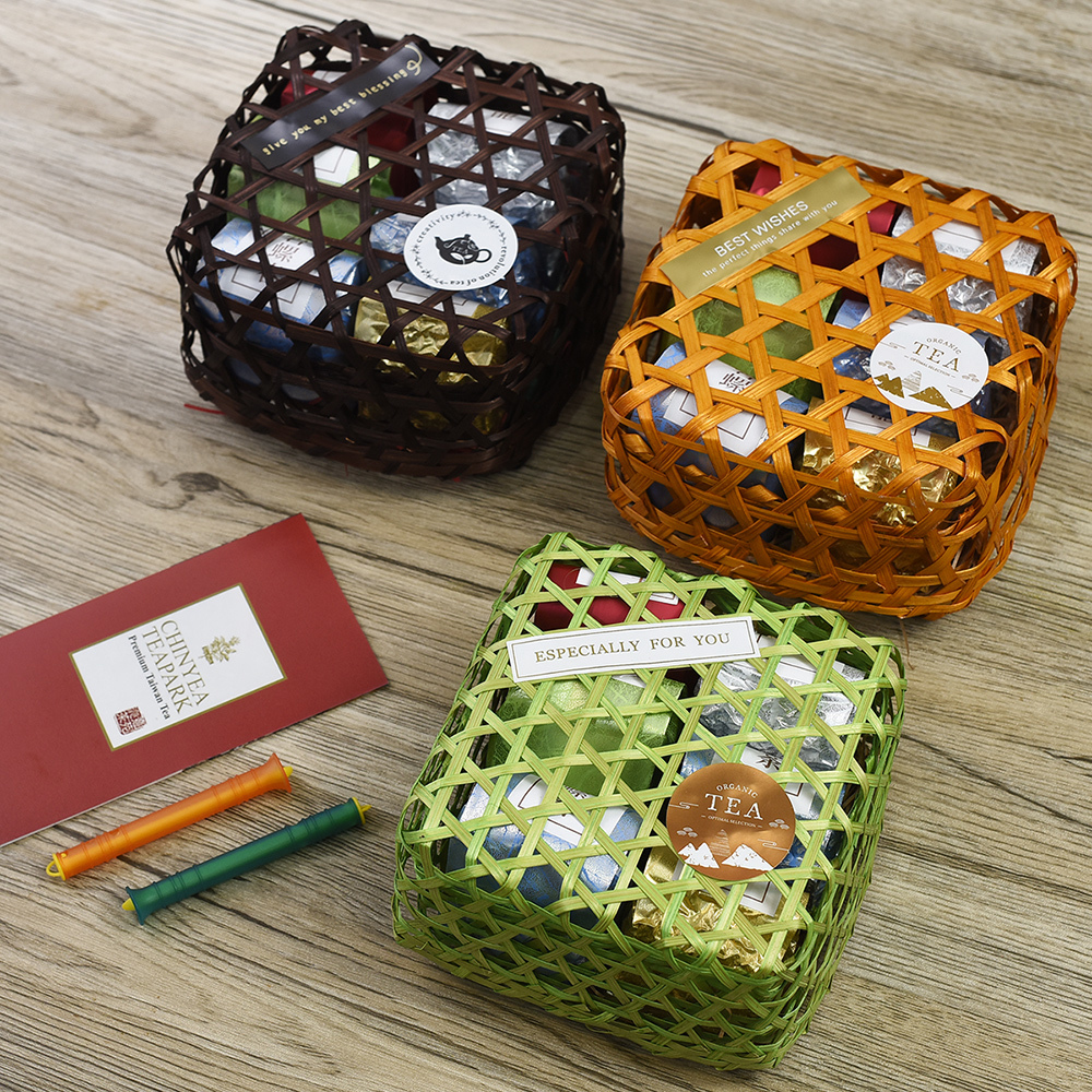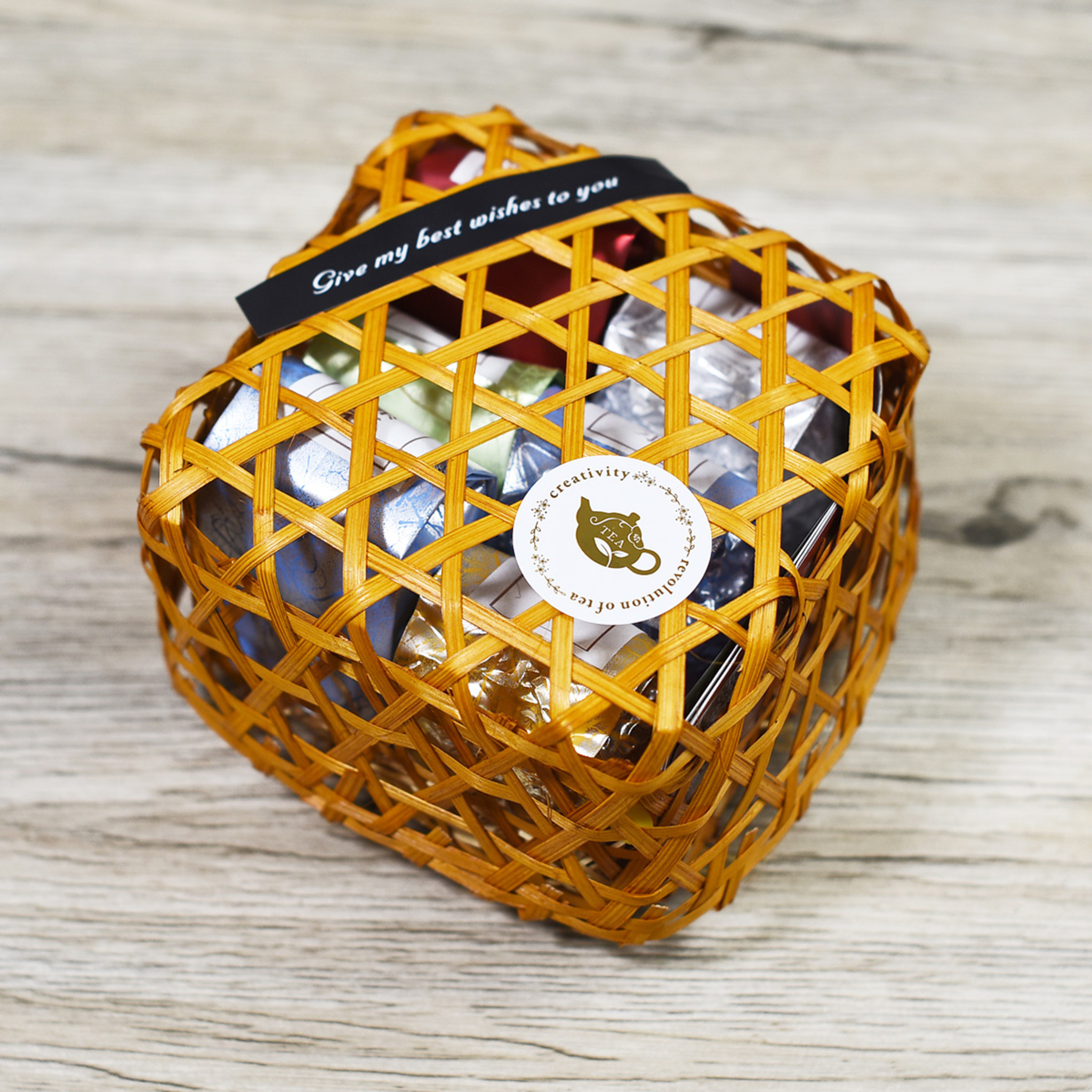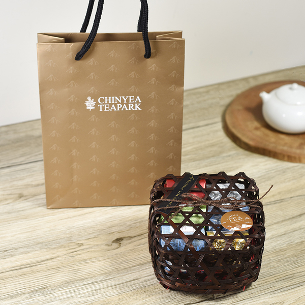 包裝方式:真空包6入, 密封夾1支, 手工編織竹籠, 手提袋