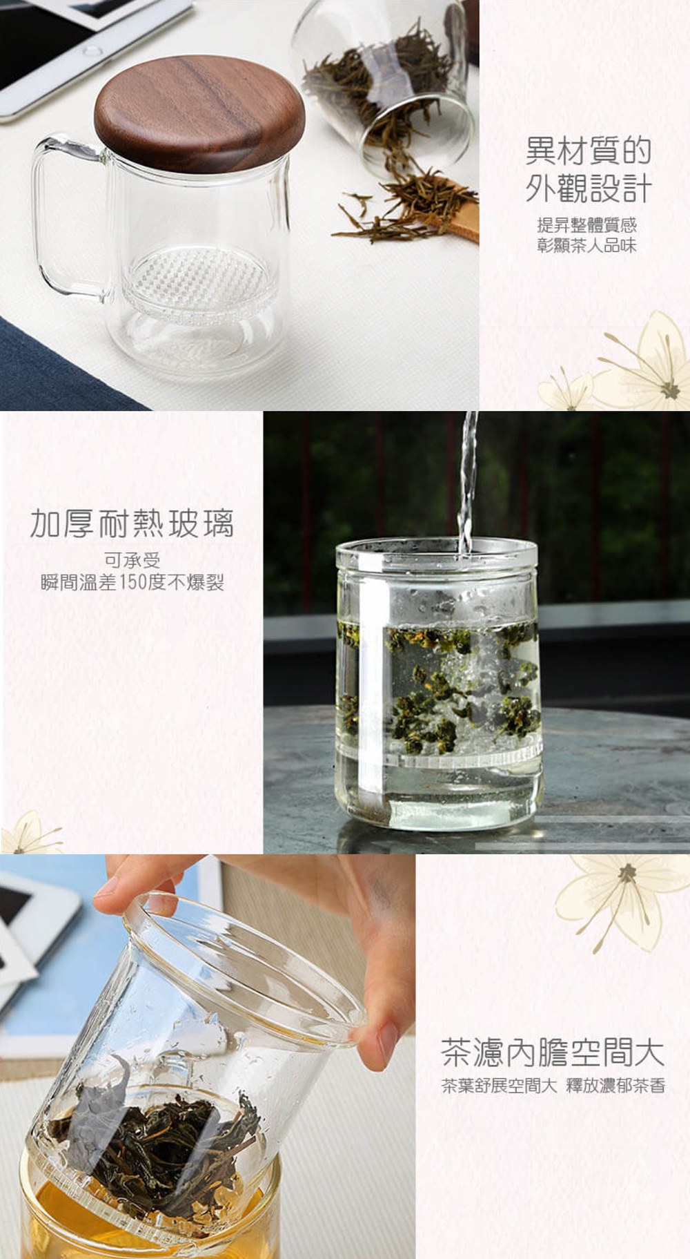 【胡桃木玻璃濾蓋杯】台灣設計製造的玻璃濾蓋杯,輕鬆沖泡一壺回甘好茶!
