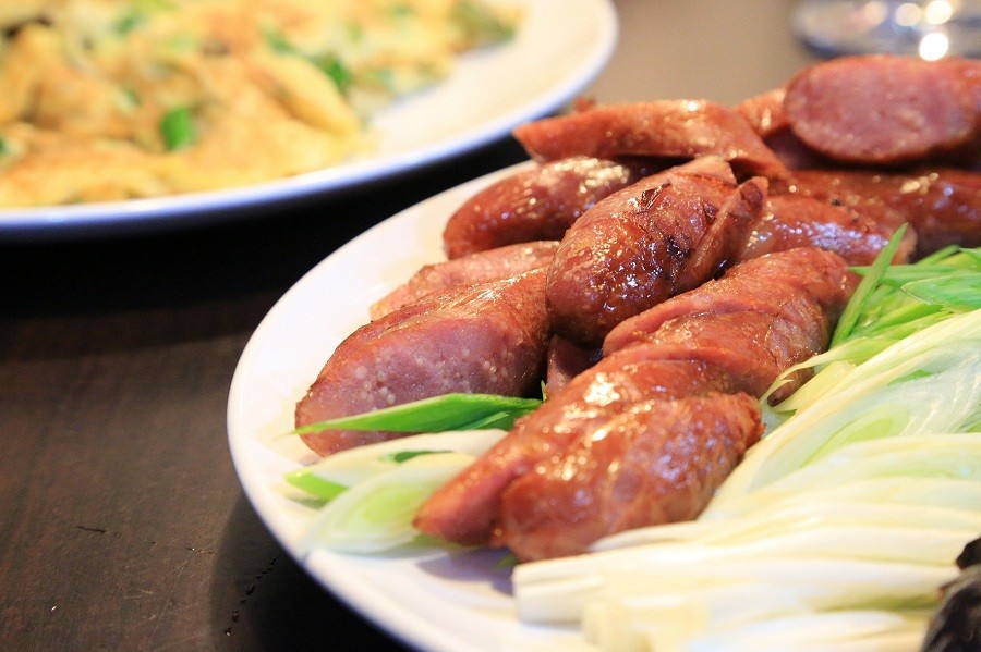 【阿里棒棒】飛魚卵原味香腸,搭配新鮮現切的蒜苗,完美結婚的美妙滋味,無可再多的言喻。