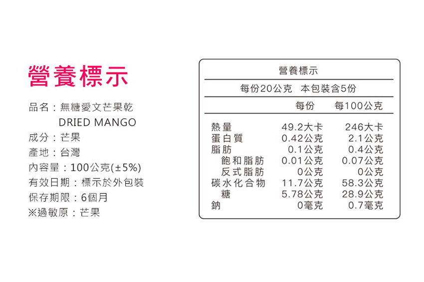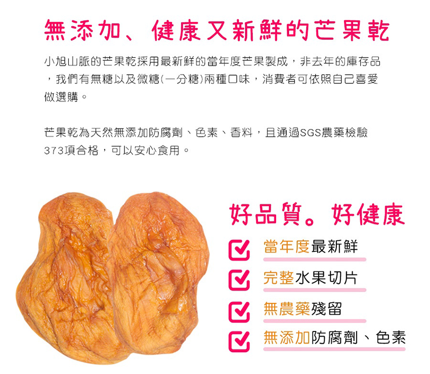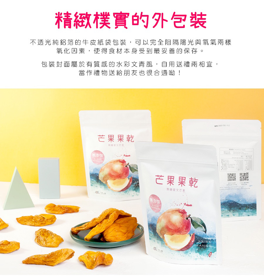 ◆商品名稱 : 【小旭山脈】無添加無糖愛文芒果乾 DRIED MANGO-1入(100g/包)