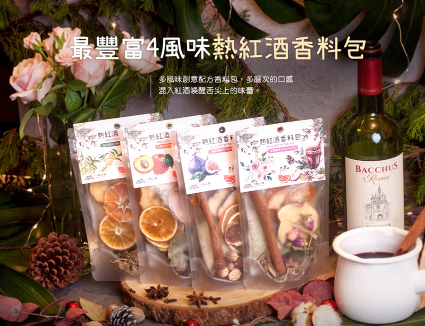 ・小旭山脈共5種創意配方紅酒香料包,聖誕節交換禮物最合適!