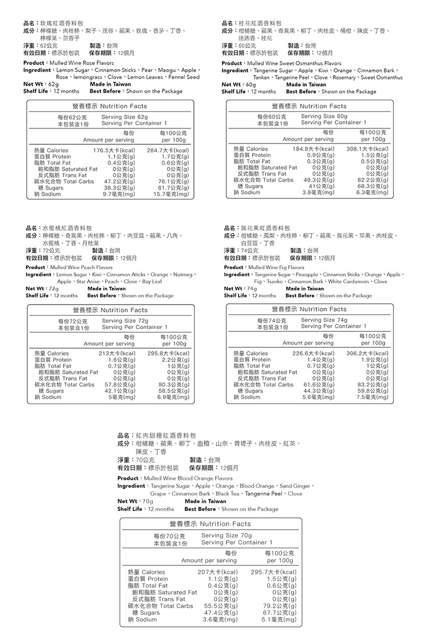 ◆商品名稱 : 【小旭山脈】玫瑰熱紅酒香料包-750ml紅酒適用大份量