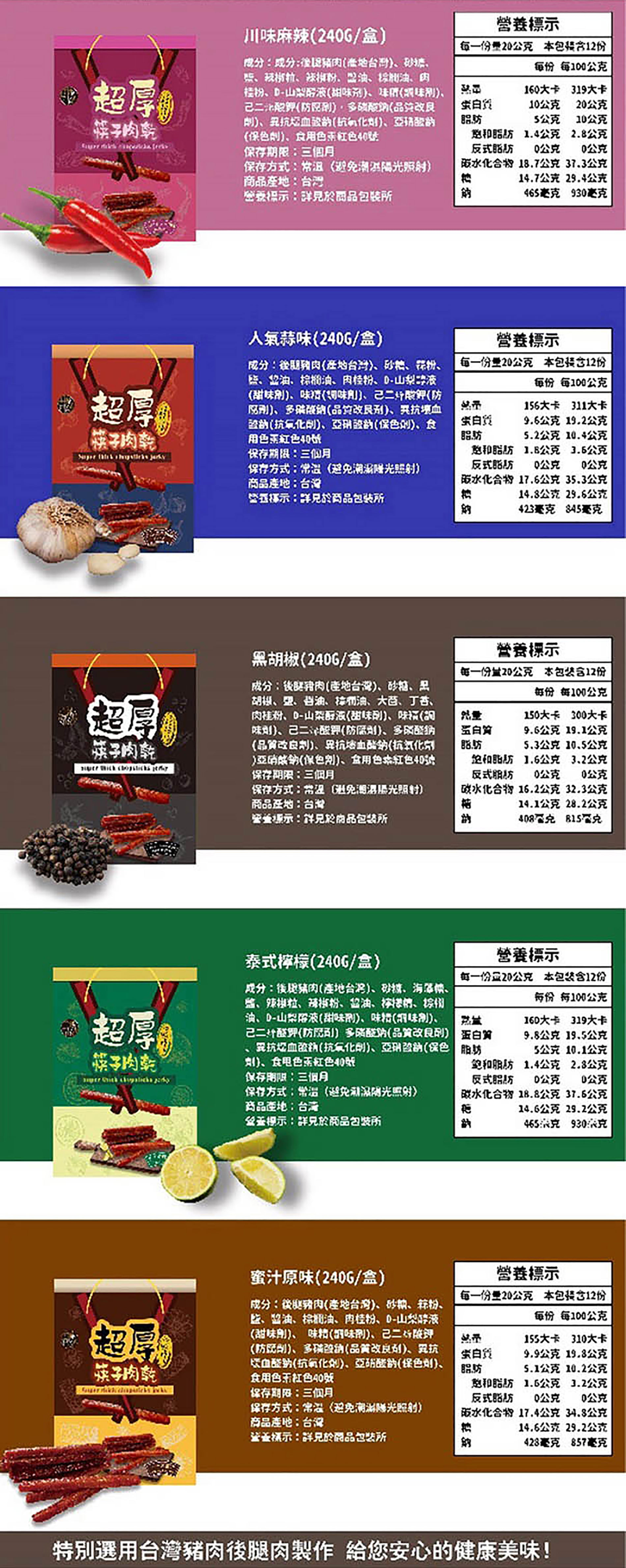 商品口味|泰式檸檬 ,戰辣川味,人氣蒜味,原味蜜汁,黑胡椒