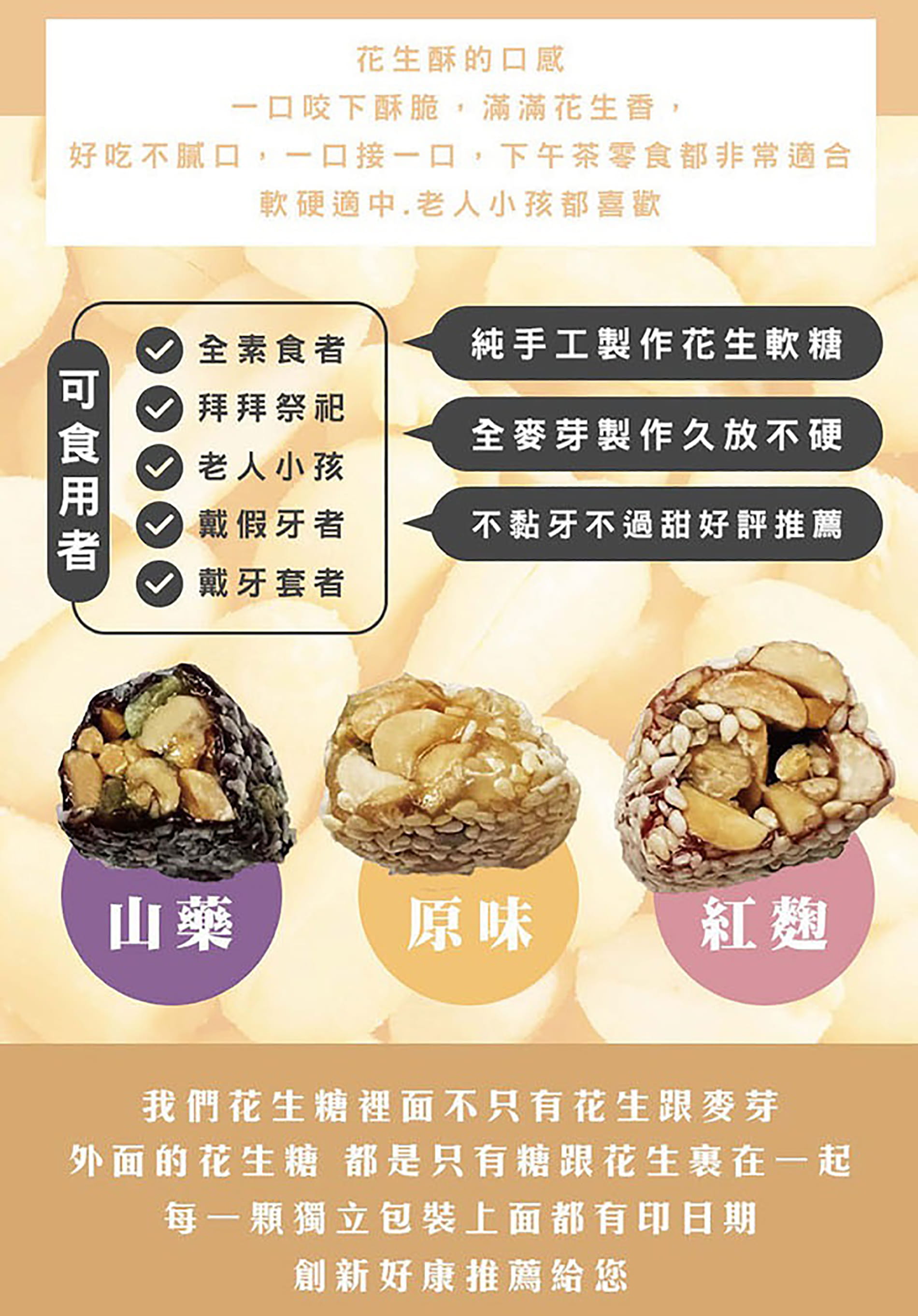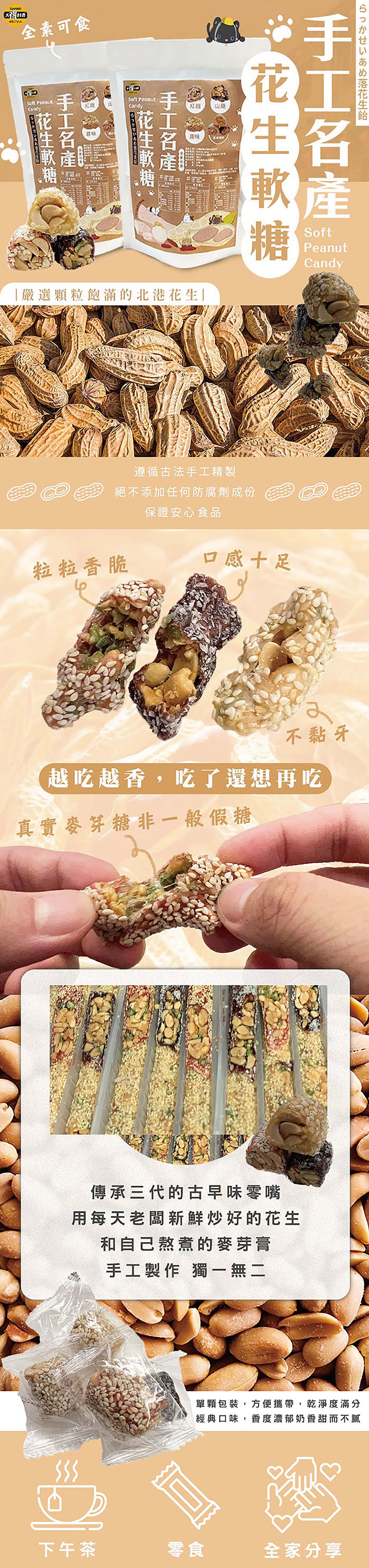 商品名稱:【太禓食品】手工名產麥芽花生軟糖(綜合)-200g/包
