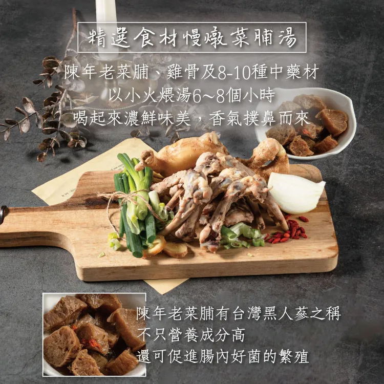陳年菜脯+骨頭熬煮湯頭,並醃料12個小時~超夠味!
