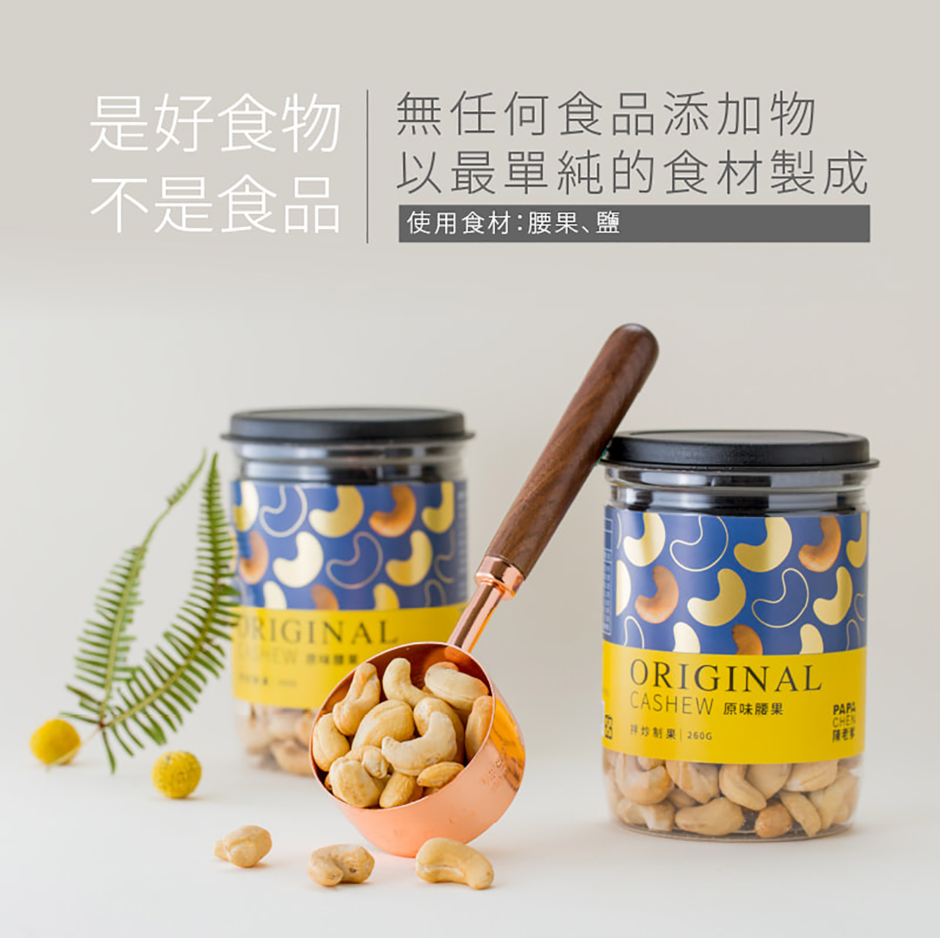 使用來自越南,通過無農藥及黃麴毒素檢驗合格的腰果仁,遵循傳統拌炒工法製作,越咀嚼越吃得到腰果的天然甜味,與市售使用烘烤製作的腰果,有著截然不同的口感。