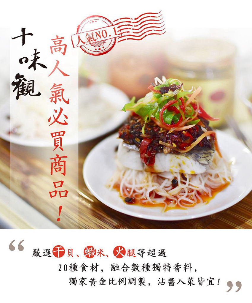 十味觀創辦人蔡辰男先生獨創私房醬料,嚴選干貝、蝦米、火腿等超過20種食材,