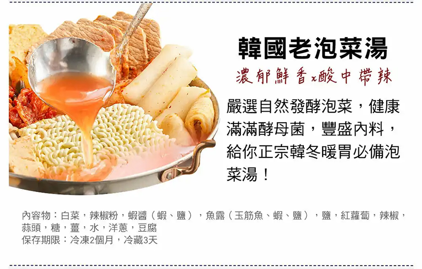 嚴選自然發酵泡菜,健康滿滿酵母菌,豐盛內料,給你正宗韓冬暖胃必備泡菜湯!
