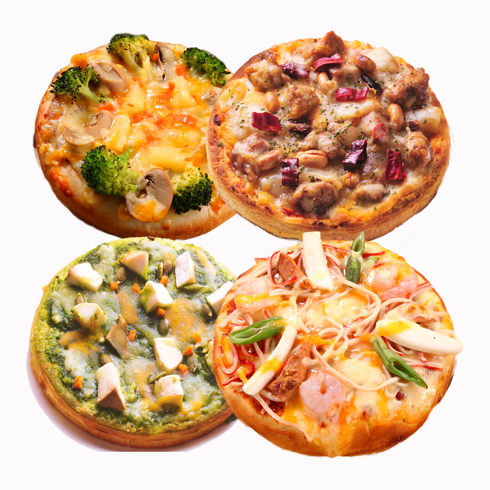 內容物:火腿、雞肉、鳳梨、起司、麵粉、洋蔥、紅椒、芹菜、迷迭香、蕃茄醬、沙拉、紅蘿蔔、花椰菜、橄欖油、發酵粉、糖、鹽、義大利香料。