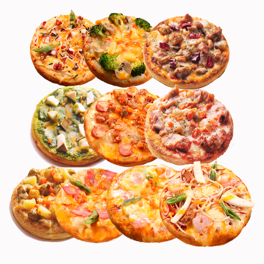 內容物:火腿、雞肉、鳳梨、起司、麵粉、洋蔥、紅椒、芹菜、迷迭香、蕃茄醬、沙拉、紅蘿蔔、花椰菜、橄欖油、發酵粉、糖、鹽、義大利香料。
